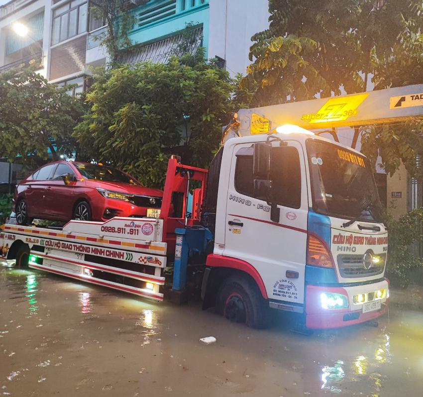 Sở hữu đầy đủ xe cẩu, sàn trượt, xe kéo móc, máy kích bình, bơm lốp, thiết bị cứu hộ ngập nước…